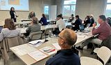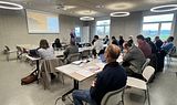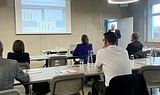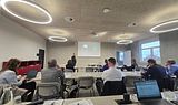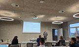 Im Anschluss an die Betriebsführung wurden die Mitglieder von Beat Moser (Grüne), seit 2014 vollamtlicher Gemeindepräsident von Münsingen, begrüsst. Er präsentierte den Teilnehmenden die aus den drei Dorfteilen Münsingen, Tägertschi und Trimstein bestehende Gemeinde mit 13'200 Einwohnern. In Münsingen haben sich 800 Unternehmen und Institutionen aus den Bereichen Gesundheit, Cleantech, Dienstleistungen und Gewerbe angesiedelt, die zusammen rund 6'800 Mitarbeitende beschäftigen. Gemeinsam mit dem Gemeinderat hat sich Beat Moser für den Ausbau erneuerbarer, einheimischer Energie und die Dekarbonisierung der Gebäudeheizungen in Münsingen eingesetzt. 1998 wurde Münsingen das erste Mal als Energiestadt ausgezeichnet und erreichte 2009 das Gold-Label, das es auch 2023 halten konnte. Die Gemeinde wurde mit 88,5% rezertifiziert. Für die Zukunft hat Münsingen grosse Pläne: In 2 Jahren soll kein Gemeindegebäude mehr mit fossiler Energie beheizt und bis 2040 das Netto-Null Ziel erreicht werden. Gleichzeitig wird auch die Versorgung mit Photovoltaik-Anlagen und das Fernwärmenetz weiter ausgebaut.