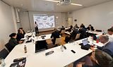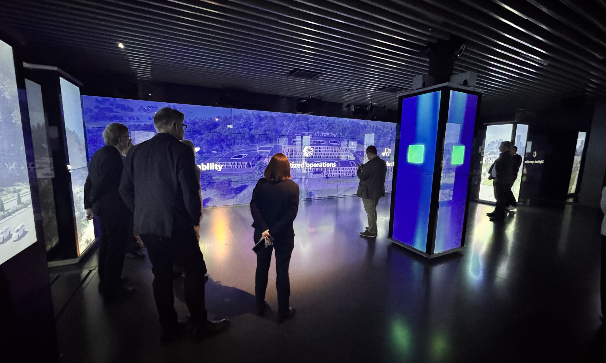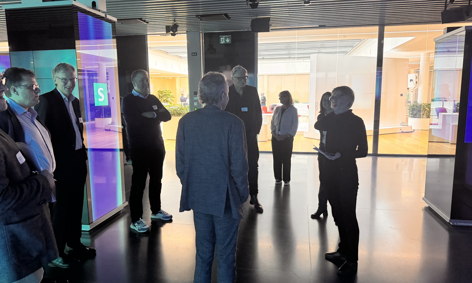 Im Anschluss an die Vorstellung von Siemens Smart Infrastructure fand für die KGTV-Mitglieder eine Betriebsführung statt. Sabrina Vetter, Leiterin des Besucherzentrums, präsentierte im Campus-eigenen 4D Experience Room die Möglichkeiten zur Infrastrukturtransformation, die Siemens verfolgt. Als Beispiel diente der Gesundheitssektor. Hier sei der Effizienzdruck besonders hoch. Der Bedarf an Dienstleistungen nähme aufgrund des demografischen Wandels immer weiter zu, während immer weniger Fachkräfte in der Branche gehalten werden könnten. Zusammen mit der KI des Experience Rooms zeigte Sabrina Vetter, wie in einem Spital Nachhaltigkeit und Produktivität durch Digitalisierung erhöht werden könnten. Z.B. erhielten die Patientinnen und Patienten individuelle Kontrolle über die Gebäudetechnik in ihren Krankenzimmern, was zu ihrem Wohlbefinden beitrage. Das Pflegepersonal, das heute einen Grossteil seiner Arbeit, damit verbringe, Equipment im Spital zusammenzusuchen, würde durch entsprechende Trackingsoftware entlastet, so dass es sich mehr den Patientinnen und Patienten widmen könne. Gleichzeitig reduziere sich dadurch der Geräteschwund. Ein solches System sei bereits im Kantonsspital Baden im Einsatz. Weiter unterstütze Siemens mit technischen Lösungen die Optimierung von administrativen Abläufen. Beispielsweise sei ein digitaler Check-In möglich, so dass Patientinnen und Patienten direkt auf den vereinbarten Behandlungstermin im Spital eintreffen könnten, ohne zuerst alle Formalitäten erledigen zu müssen.